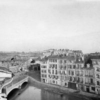 - ES 1880 - 1895 Vista del rio Nive en Baiona, con su puente y en una de las margenes alineación de casas urbanas.
