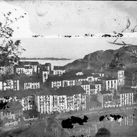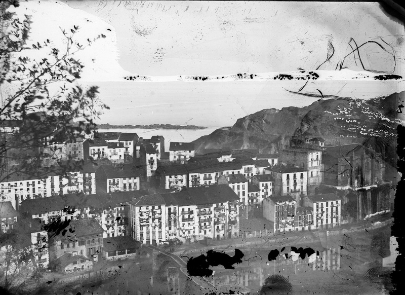 - ES 1880 - 1895 Vista desde la margen derecha de la ría, mostrando la linea de casas al pie de la ría y el puente viejo.