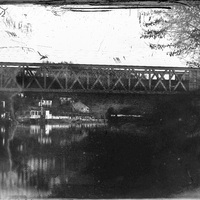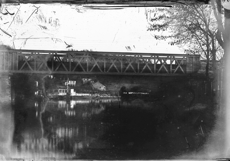 - ES 1880 - 1895 Vista de un rio con su puente de estructura metálica para el paso del tren. Quizá Baiona.