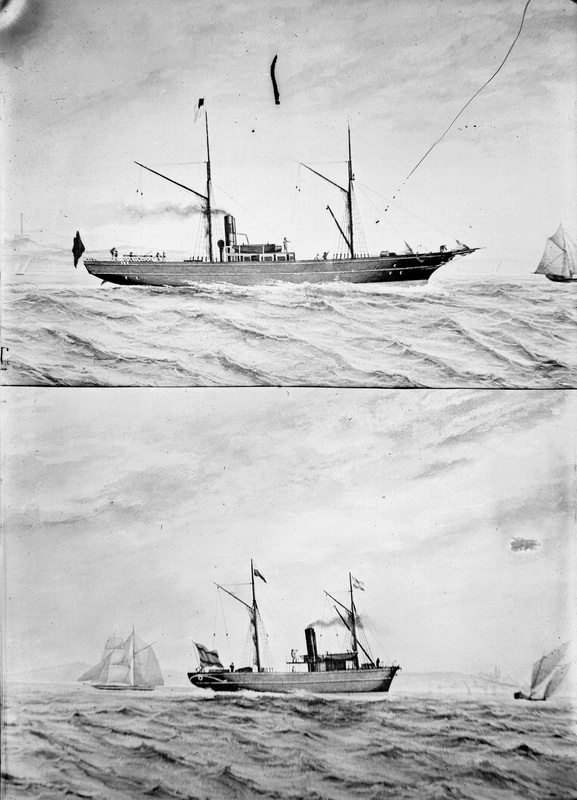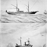 - ES Reproducción fotográfica de dos láminas donde aparecen los perfiles de dos barcos navegando, ambos con mástiles y chimenea de vapor.