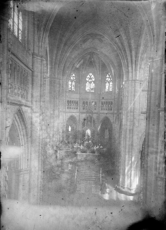- ES 1880 - 1895 Vista tomada desde el coro mostrando la nave central de la catedral de Santiago.