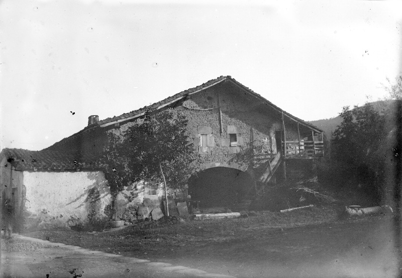 - ES 1880 - 1895 Vista de la portada de un caserío no identificado que presenta portal con arco escarfano.