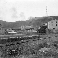 1880 - 1895 Vista parcial de la instalaciones fabriles de la Sociedad Española de la Dinamita - Según dossier de UEE (Reg. Entrada 2167, 20-04-2006), está tomada desde el tendido ferroviario del Ferrocarril Central de Vizcaya, en torno a 1890.
