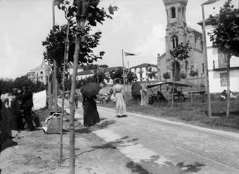 - ES 1885-1895 Vista parcial de la actual Avenida Basagoiti en Algorta mostrando a la derecha la iglesia de San Ignacio.