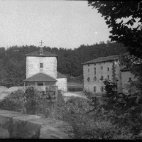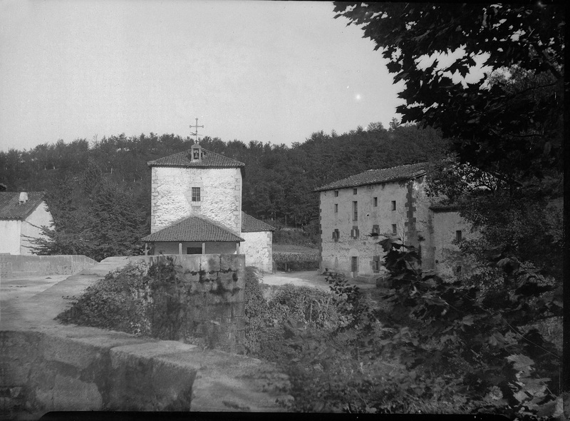 - ES 1885-1895 Vista sacada encima del puente del río Urola donde se aprecia la iglesia de Santa Ines, en el barrio de Iraeta, Zestoa.