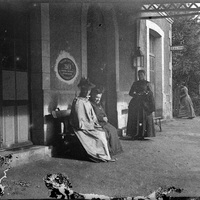 - ES 1885-1895. Vista de la estación de Zumarraga donde aparecen tres mujeres esperando al tren.