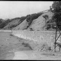 - ES 1890-1895. Vista general de un momento de la construcción del camino al puerto viejo de Algorta sobre el mar.