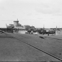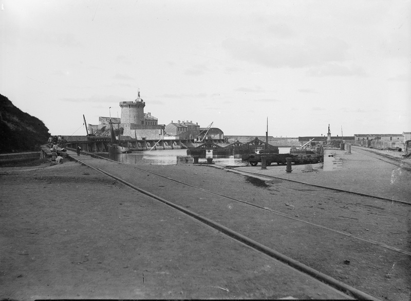 - ES 1880-1895 Vista del puerto de Sokoa con la torre del fuerte recortando el cielo.