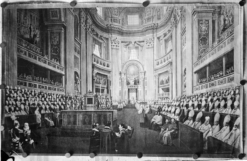- ES 1880 - 1895 Reproducción fotográfica de una fotografia donde aparece un concilio de prelados de la iglesia.