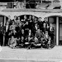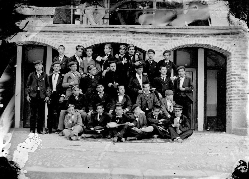 - ES 1880 - 1895. Exterior. retrato, plano general de un grupo de muchachos, en varias filas.