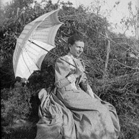 - ES 1880 - 1895. Retrato, plano americano de una mujer sentada con sombrilla abierta.