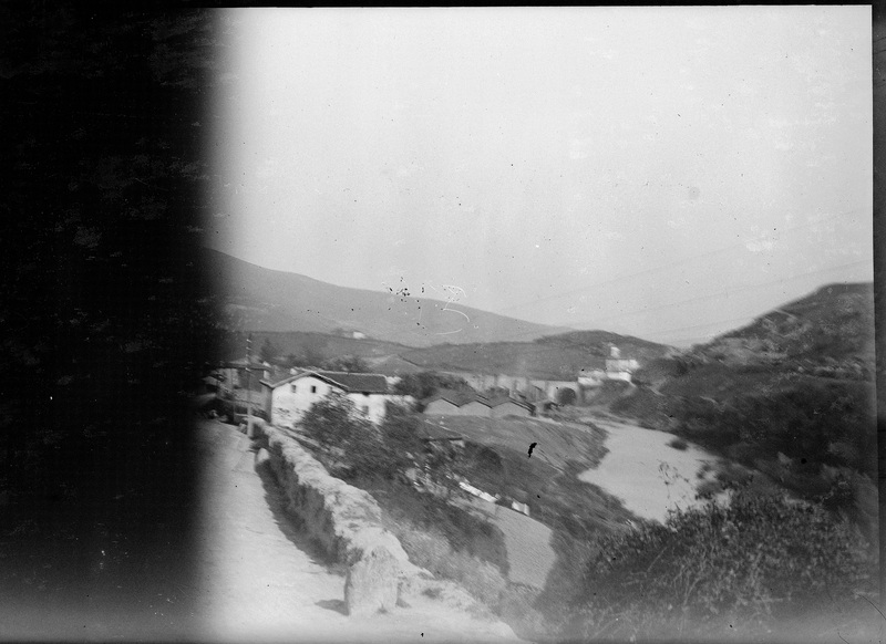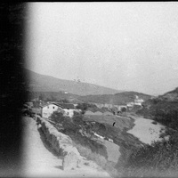 - ES 1880 - 1895 Paisaje rural sin identificar, con puente de varios ojos e iglesia al fondo.