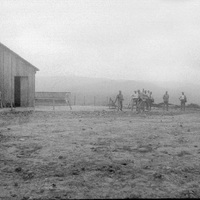 1880-1895 Escena militar sin identificar donde aparece un grupo de soldados y caseta - cuartel a la izquierda. ¿Podría tratarse de la Bateria de San Agustin de Bilbao?. Mismo lugar, ver ERR-406