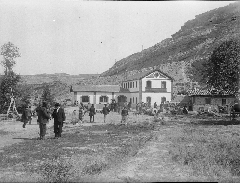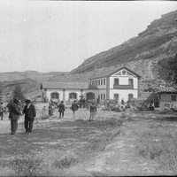 - ES 1880 - 1895 Escena donde aparece gente y una casa o instalación, taller..., sin identificar.