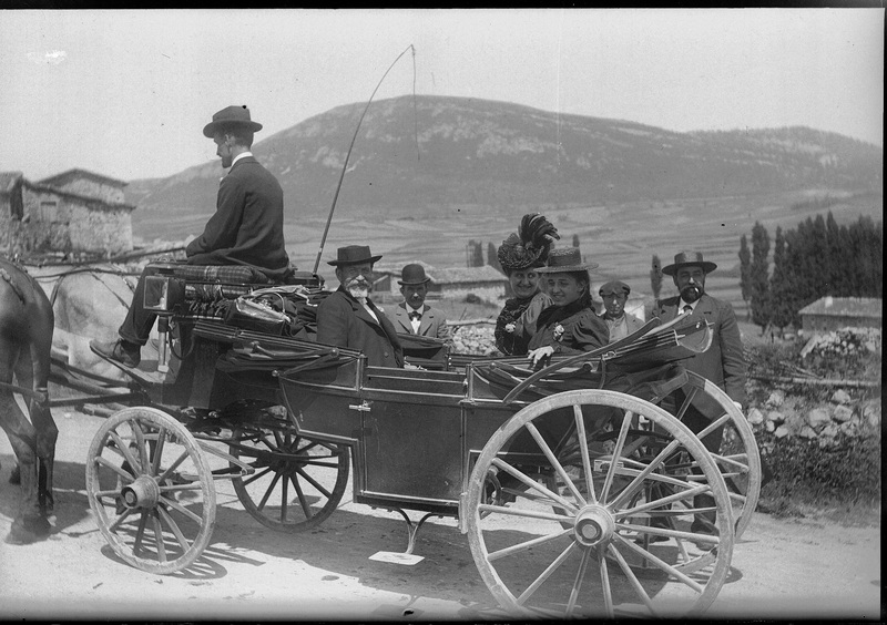 1880-1895 Hombres y mujeres sentados en un carruaje. Segun dossier de UEE (Reg. entrada 2167, 20-04-2006), uno de los retratados fue consejero de UEE.