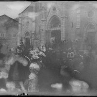 - ES 1880-1895 Desfile, procesión, acontecimiento delante de una iglesia, sin identificar. Muy parecida a Santa Eugenia de Biarritz.