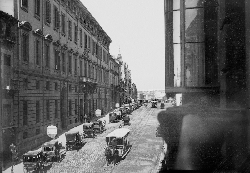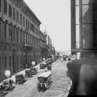 La foto muestra la calle de Alcalá de Madrid hecha desde un balcón de la acera de los pares y posiblemente se corresponde con la foto ERR-529, hecha hacia el lado opuesto en que se ve parcialmente la Puerta del Sol. Muy probablemente la foto ERR-530 está tomada el mismo día y desde el mismo lugar. El edificio de la izquierda es el de la antigua Aduana que hoy Ministerio de Hacienda. En la parte superior izquierda asoma la linterna de la cúpula de la iglesia de Las Calatravas que hoy sería imposible ver desde el mismo punto. Finalmente, al fondo de la imagen justo por encima del techo de los tranvías puede percibirse la fachada del Palacio de Linares que da al Paseo de Recoletos y hasta el edificio llamado "La casa de Muñecas" que está en los jardines del palacio.
