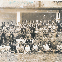 - ES Niños y niñas, con J. M. Ostolaza, el profesor de EBEFO, y varias monjas. Puede tratarse de una visita de un colegio cercano. 1928
