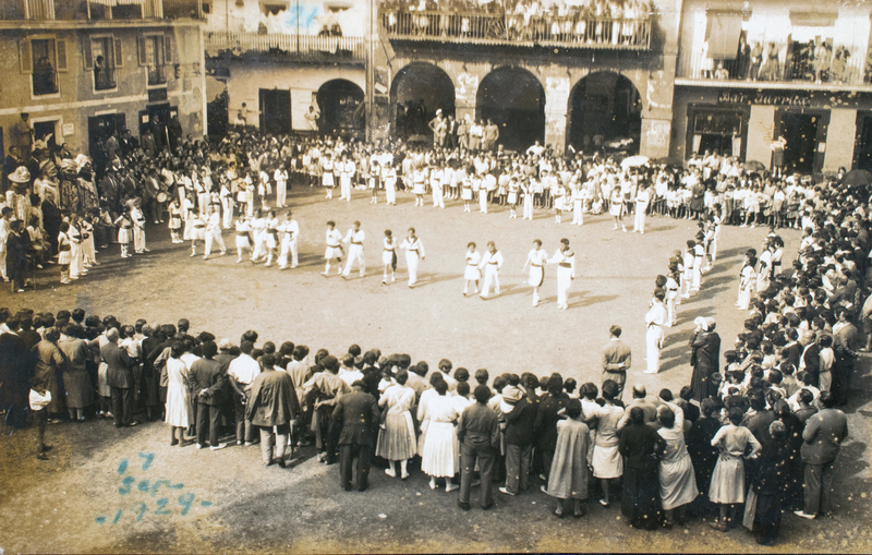 - ES Danzas vascas en la Plaza, delante del ayuntamiento. 17 de septiembre de 1929