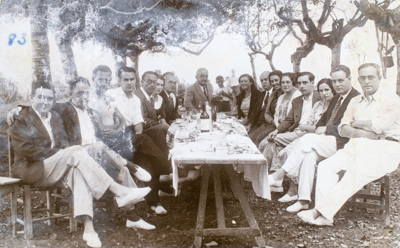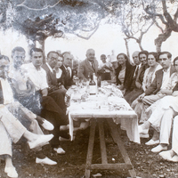 - ES Comida al aire libre. 19 de septiembre de 1934. Tercera por la derecha, la bibliotecaria Pepita Arriola. Sexta por la derecha, la esposa del profesor Julián González de Barcia.